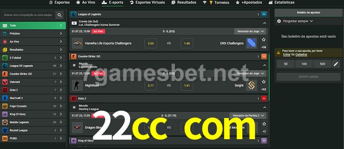 A aposta 22cc com oferece aos jogadores a experiência mais conveniente de apostas em eSports!